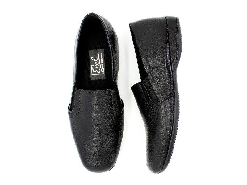 comme un mocassin, mais pour l'intérieur ! extra souple, se moule au pied. Les élastiques latéraux apportent de l'aisance tout en maintenant le pied comme une chaussure d'intérieur. Aussi appelé chausson. Ce modèle incontournable de la marque EREL est fabriqué selon un savoir faire unique, le cousu américain selon un procédé de coutures délicates.